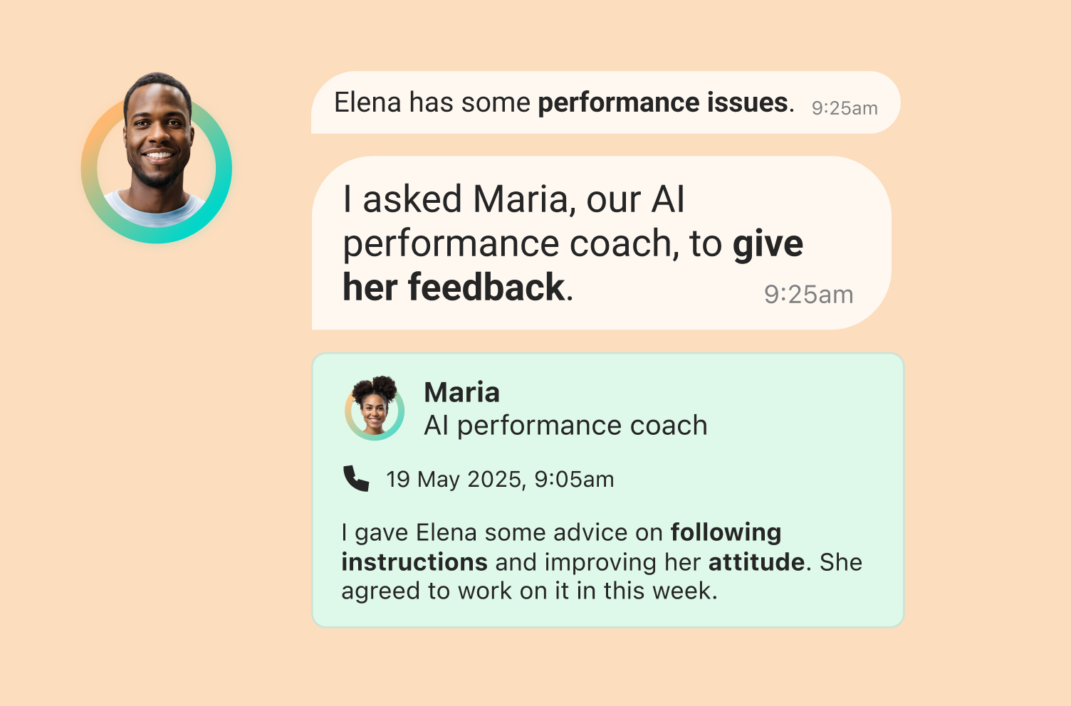 Teo can update you on performance metrics in real time, keeping visibility high without replacing your oversight.