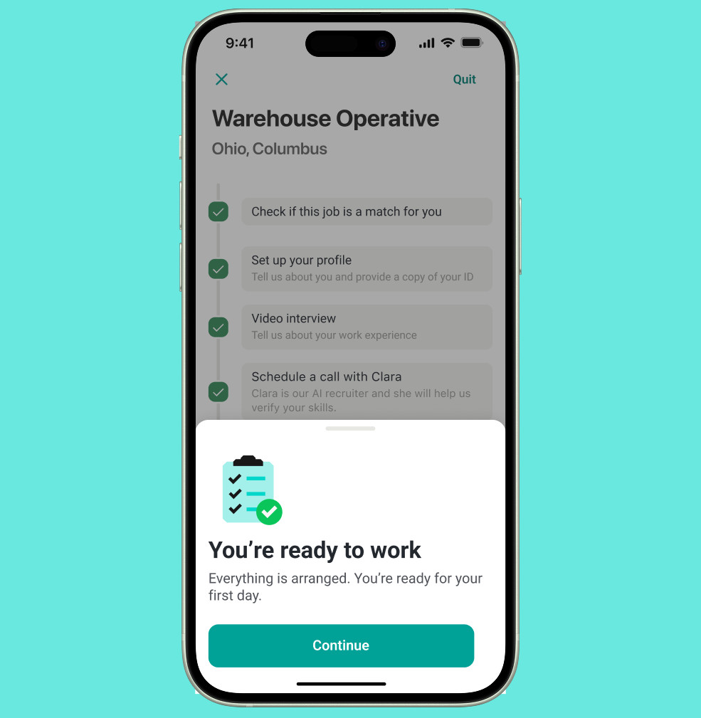 Yes. Clara continuously monitors available job opportunities and candidate profiles, reaching out to the best-fit candidates via calls and messages to fill roles faster. If a candidate hasn’t completed a task within a certain timeframe, Clara will call them automatically to trouble shoot any issues and help them take the next step faster.