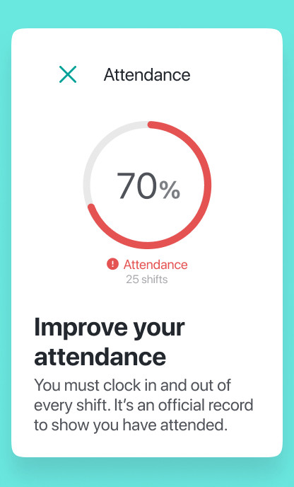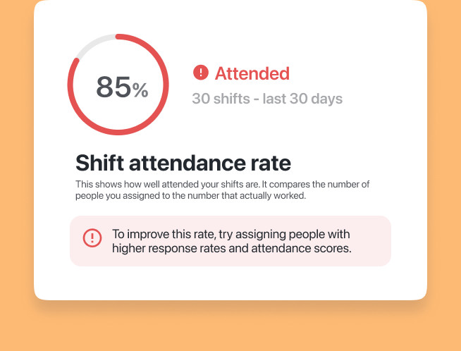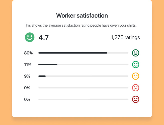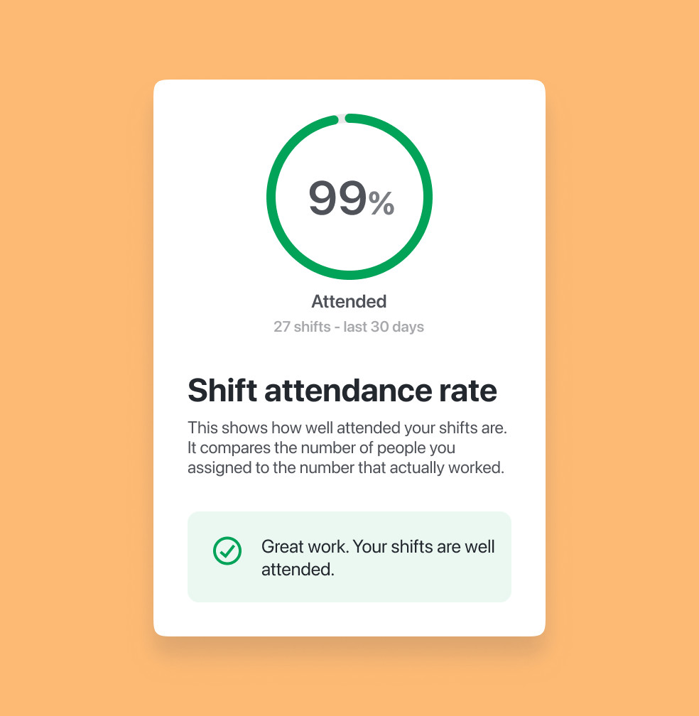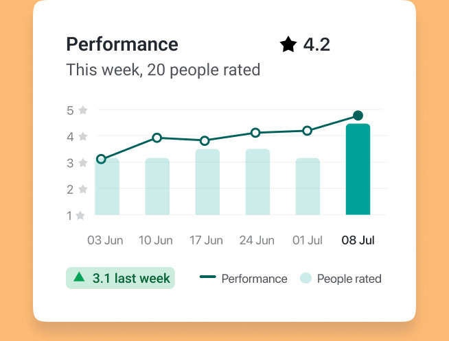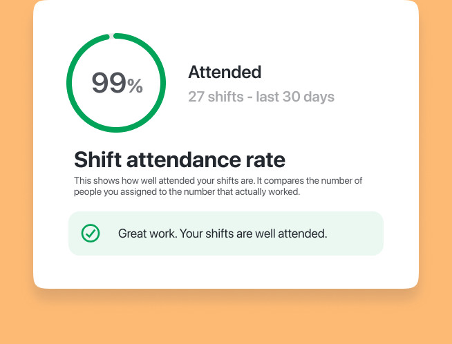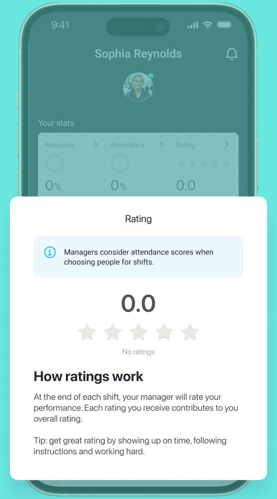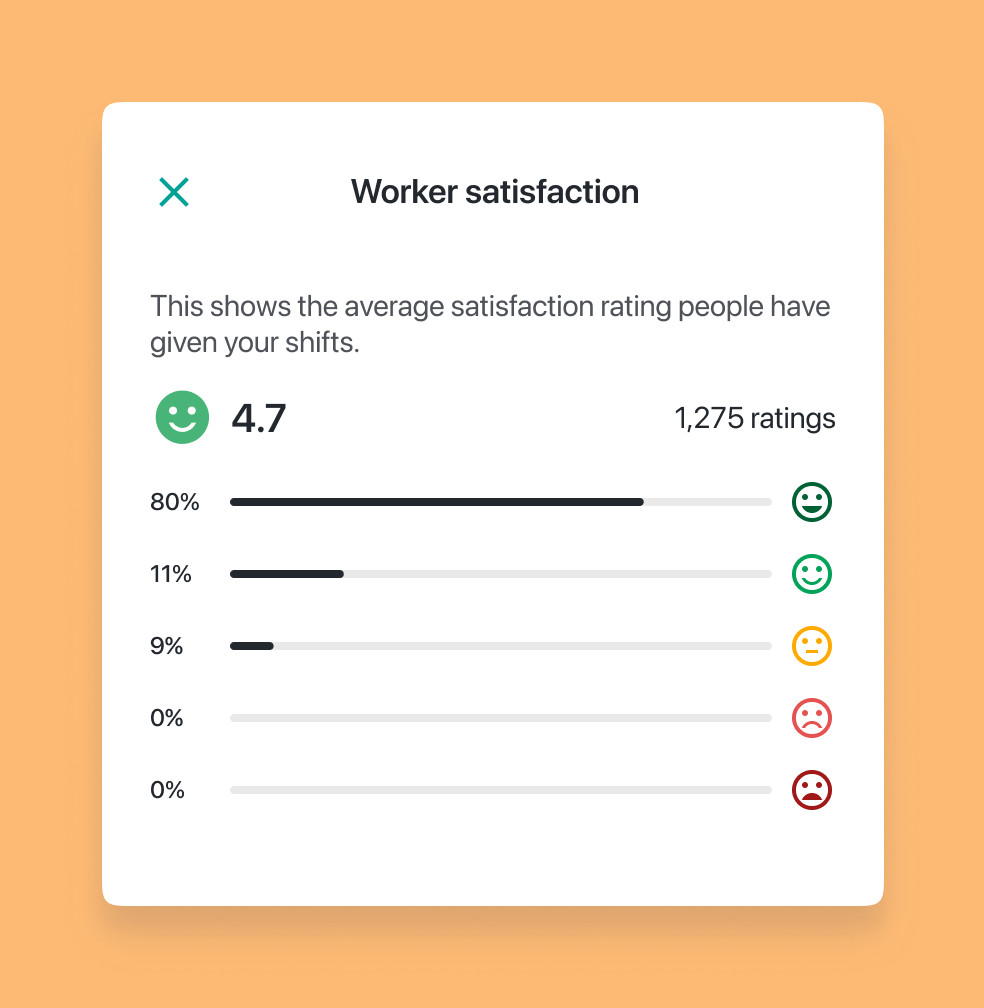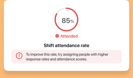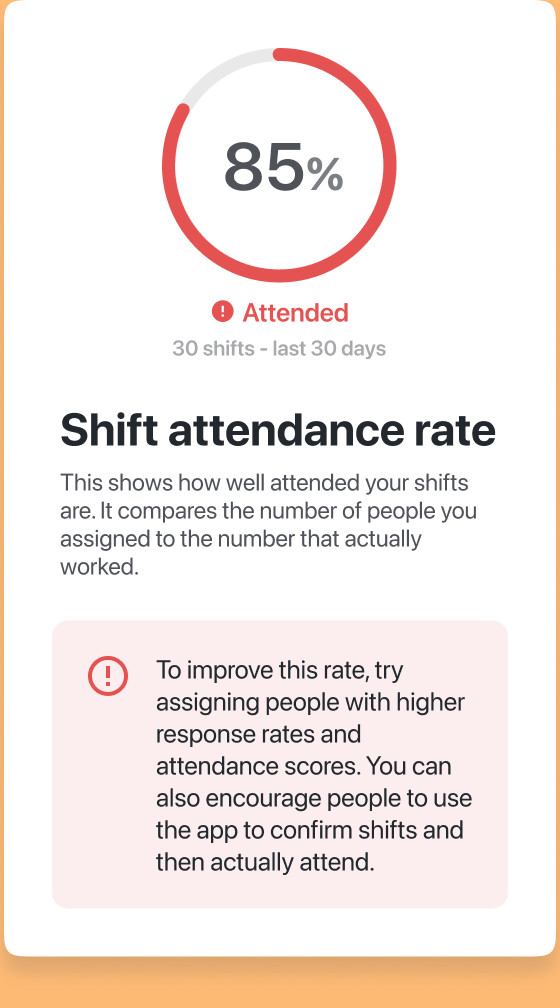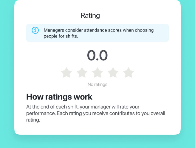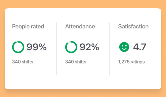 Supervisors have access to performance indicators on their profile, including how many people they’ve rated, attendance scores, and shift satisfaction scores. This visibility, combined with practical tips and nudges, empowers them to improve their performance.