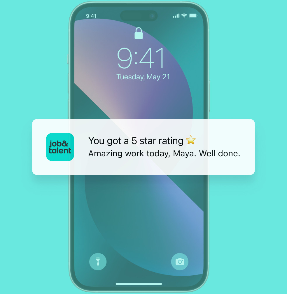 Workers receive push notifications when they are rated. These notifications inform them of their performance in real-time, helping to reinforce positive behavior and provide tips for improvement if necessary.