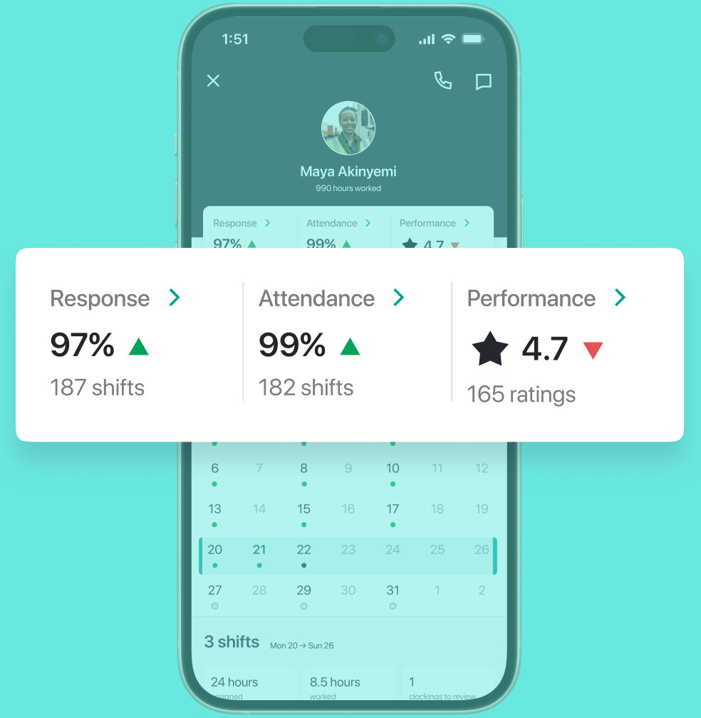 Worker profiles are updated with ratings and KPIs, providing greater visibility into their performance and upcoming shifts. This information helps in assigning more work to strong performers, thereby increasing overall productivity and workforce quality.