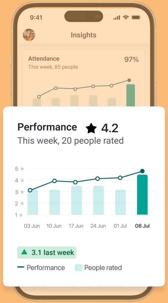 Create a performance culture with our ratings and feedback features, powered by AI. Boost your workers’ and supervisors’ performance alike, so you continually hit your greatest productivity targets.