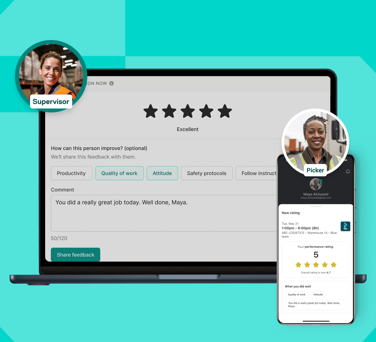 The real-time data provided by ratings and feedback allows businesses to plan more accurately and react quickly to changes. This visibility and control help in optimizing workforce management, ensuring compliance, and maintaining high performance standards.